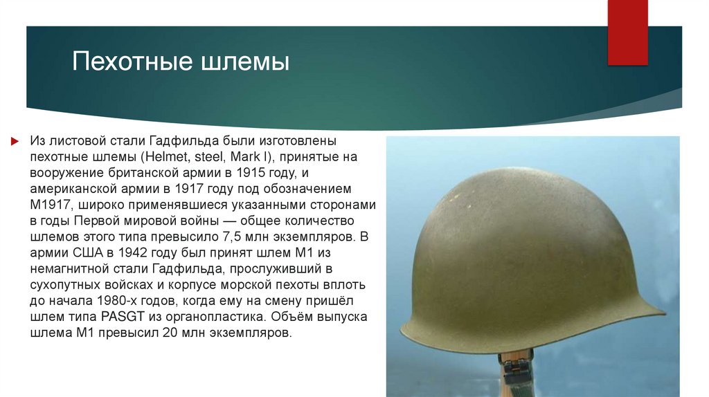 Пехотные шлемыИз листовой стали Гадфильда были изготовлены