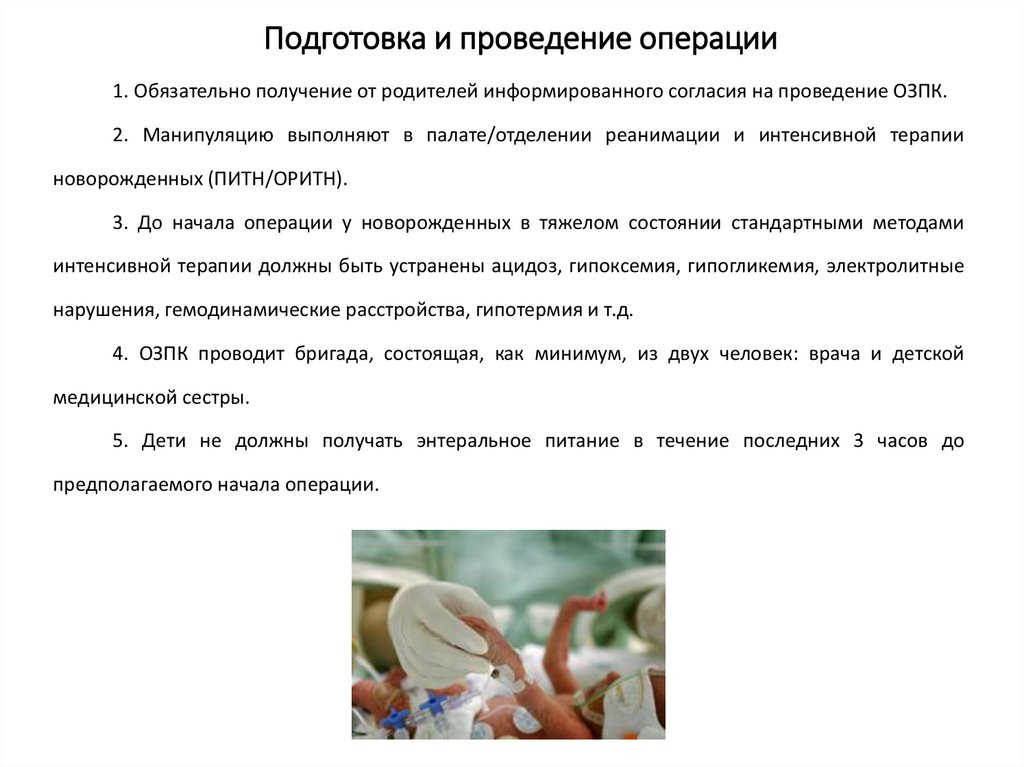 Подготовка и проведение операции6. Непосредственно перед операцией в желудок должен быть введен постоянный зонд,