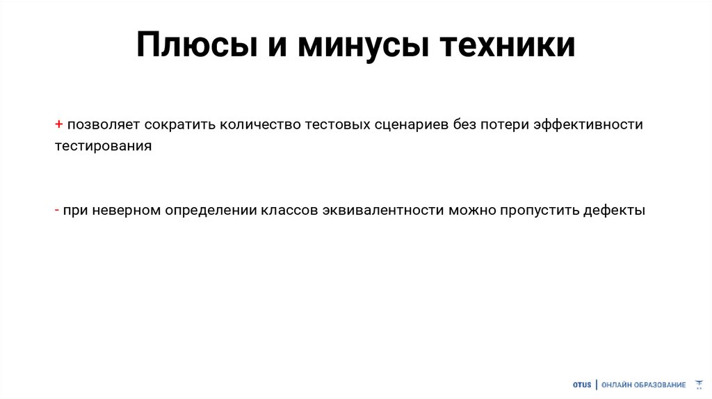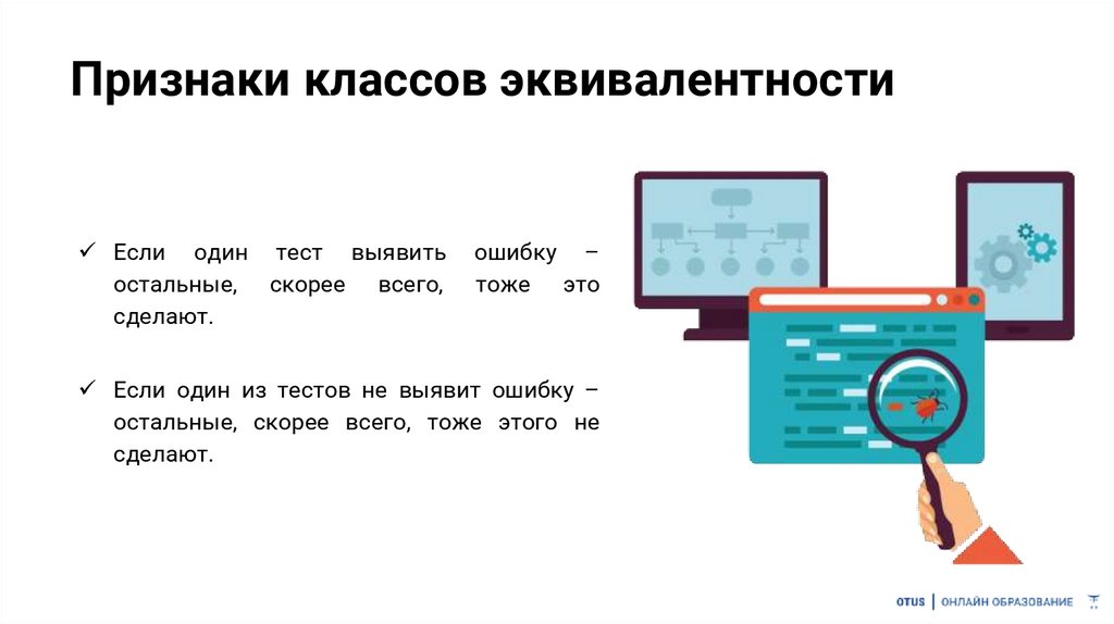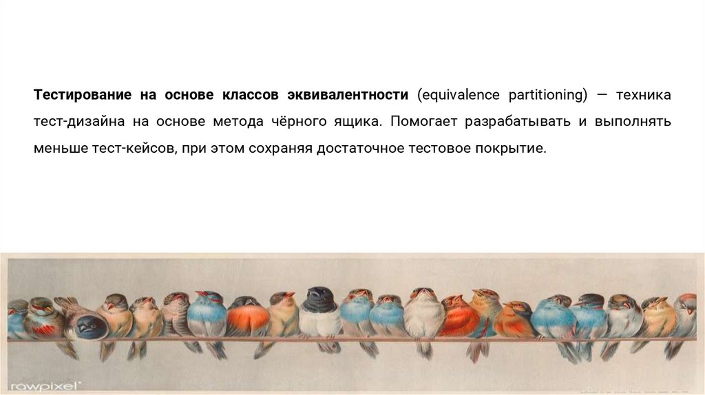 Тестирование на основе классов эквивалентности (equivalence partitioning) — техникатест-дизайна на основе метода чёрного ящика. Помогает разрабатывать и выполнять
