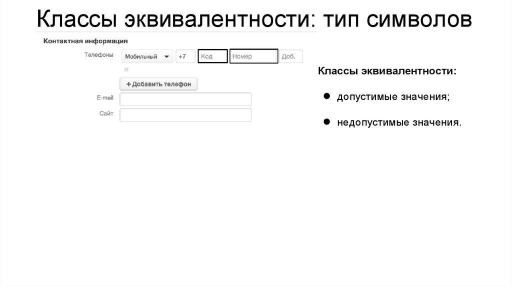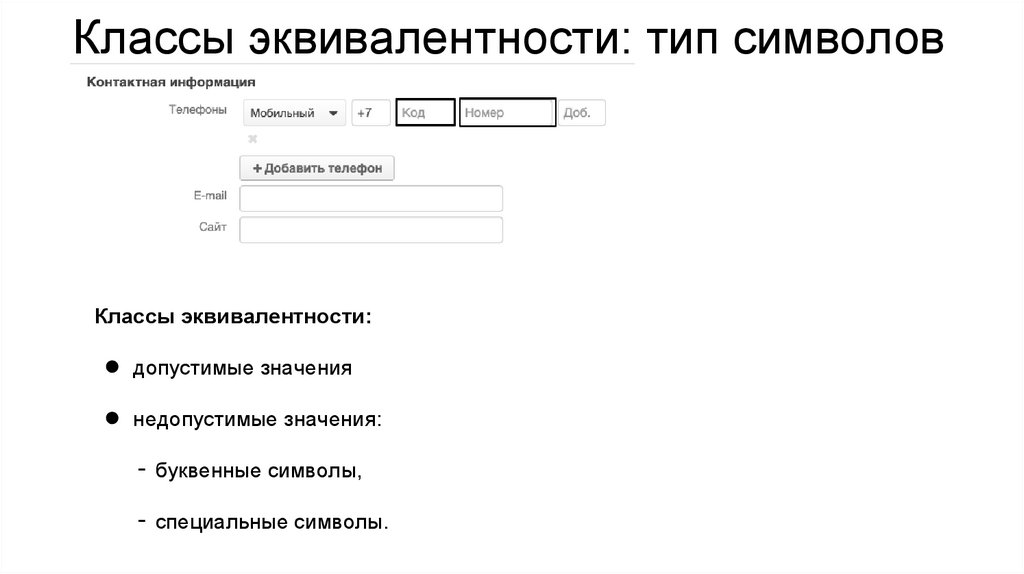 Классы эквивалентности: тип символовКлассы эквивалентности: