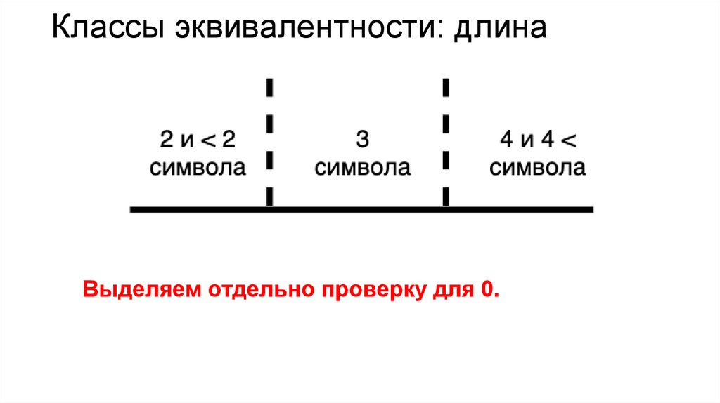 Классы эквивалентности: длинаВыделяем отдельно проверку для 0.