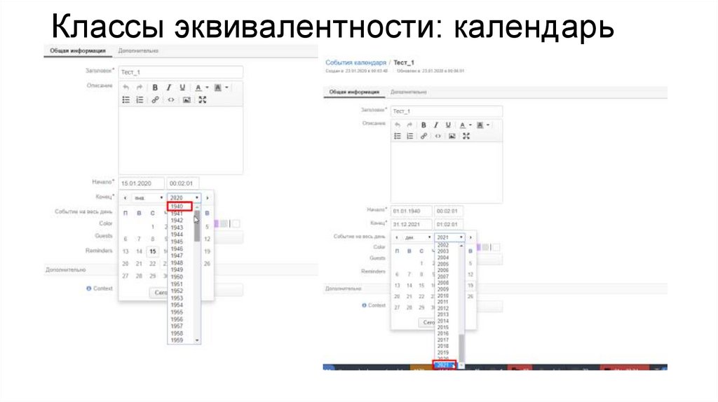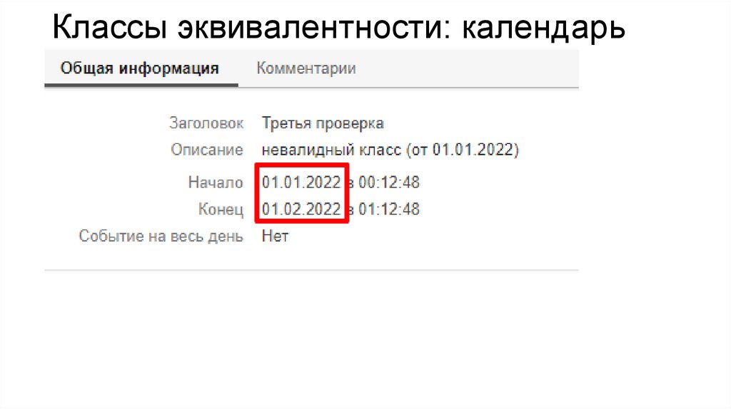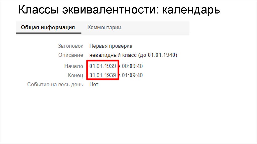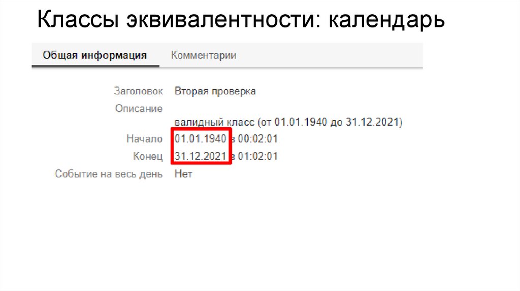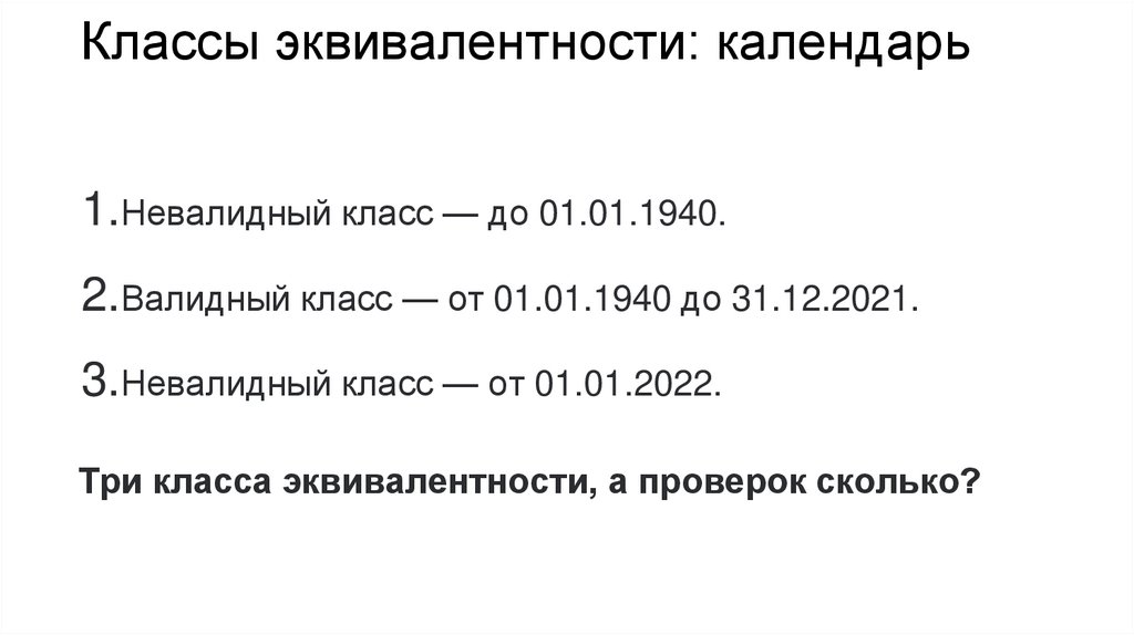 Классы эквивалентности: календарьКлассы эквивалентности для календаря: