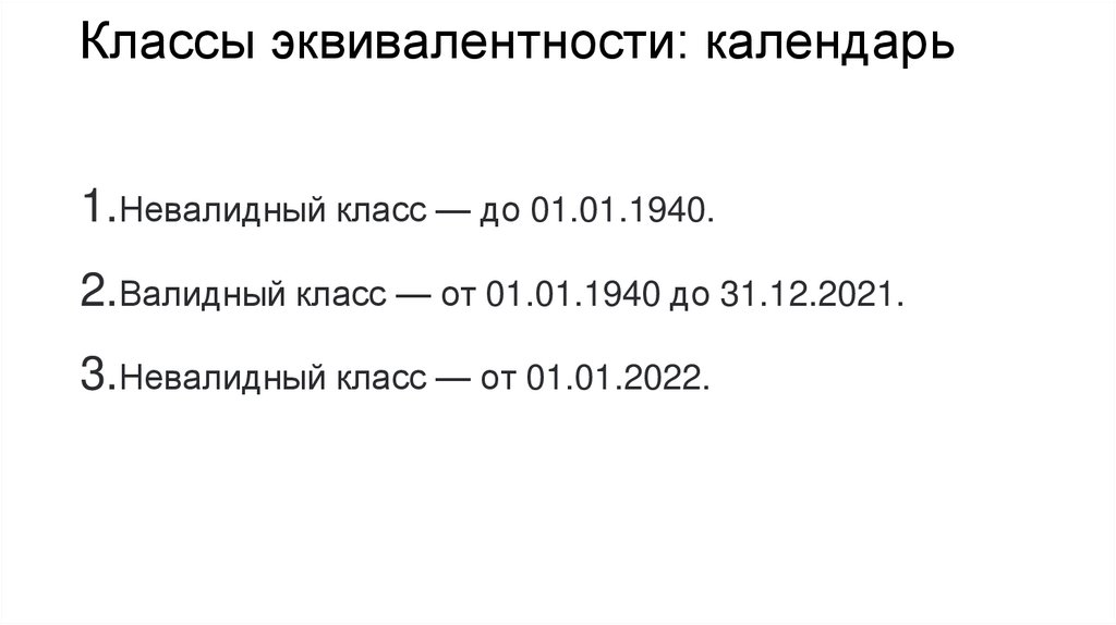 2.Валидный класс — от 01.01.1940 до 31.12.2021.