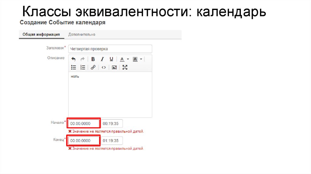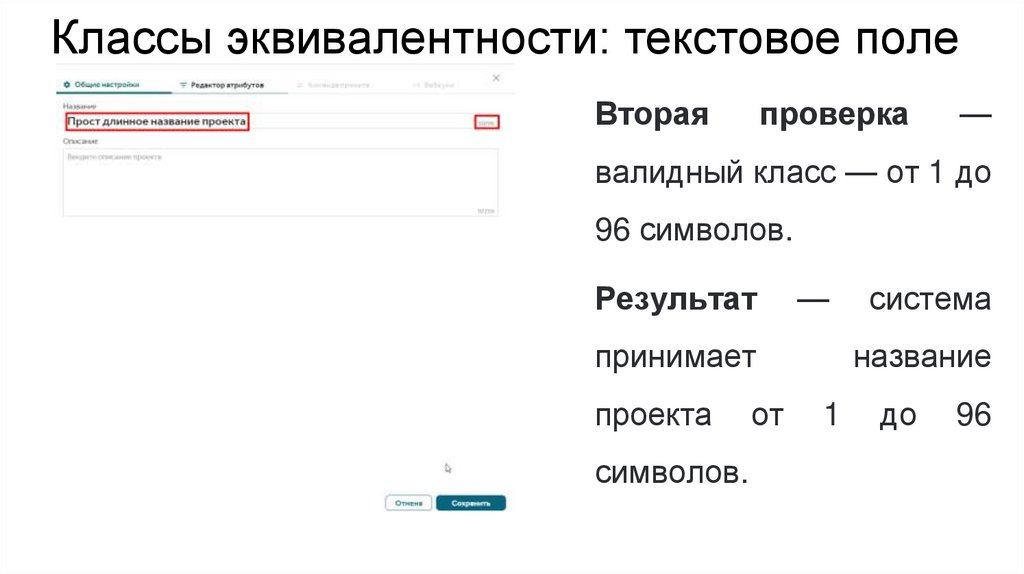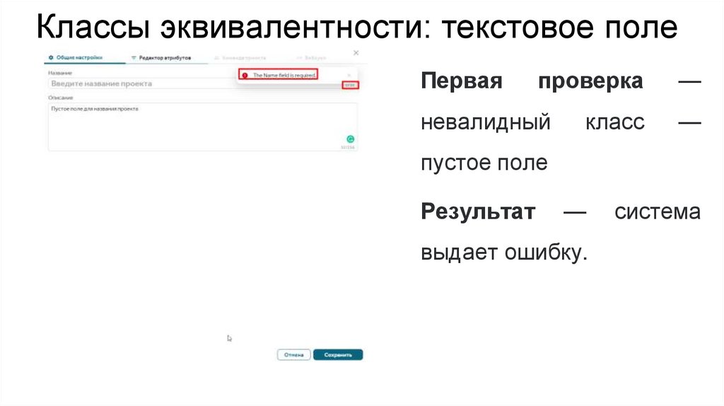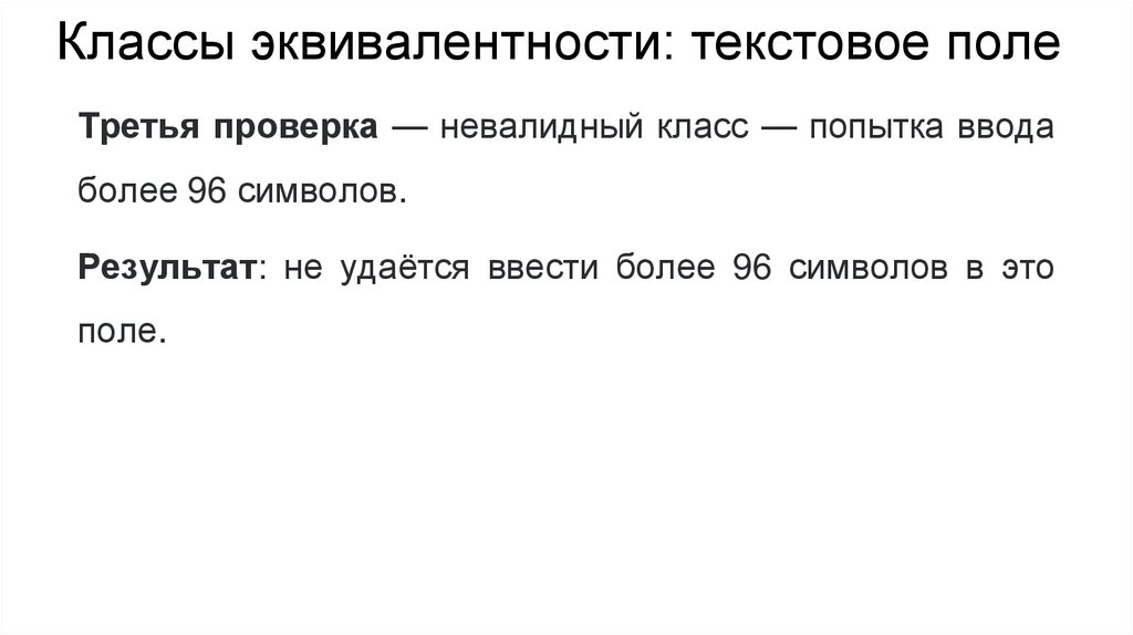 Классы эквивалентности: текстовое полеТретья проверка — невалидный класс — попытка ввода