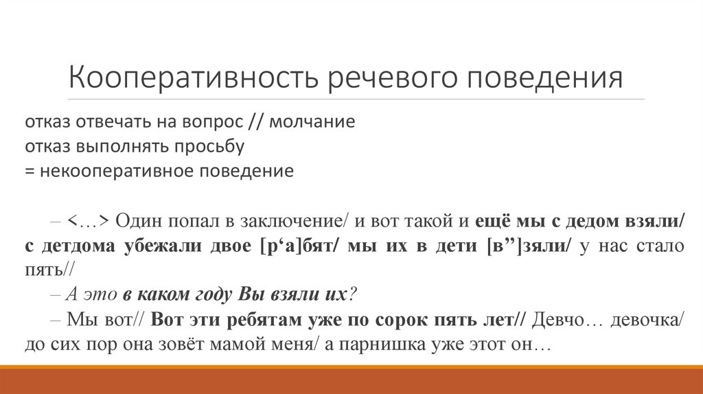 Кооперативность речевого поведенияотказ отвечать на вопрос // молчание