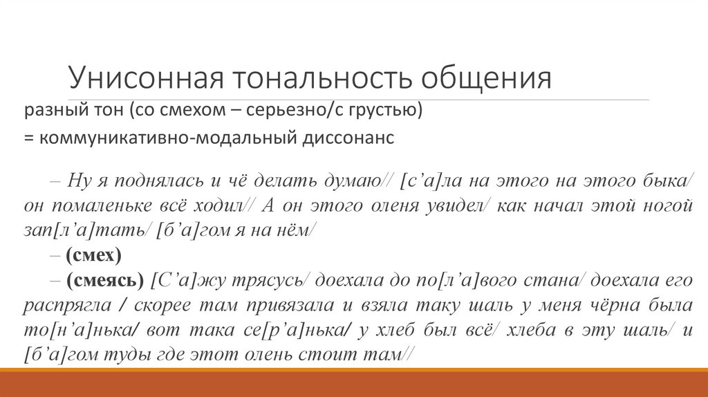 Унисонная тональность общенияразный тон (со смехом – серьезно/с грустью)