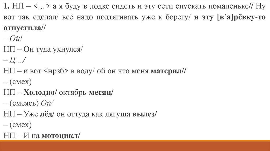 3. НП – <…> но я-то суха// (смеясь) А наменя смех/ навалился/