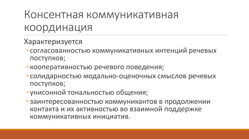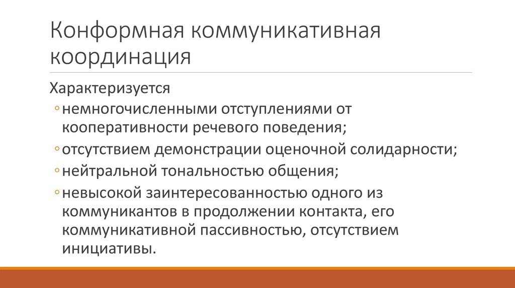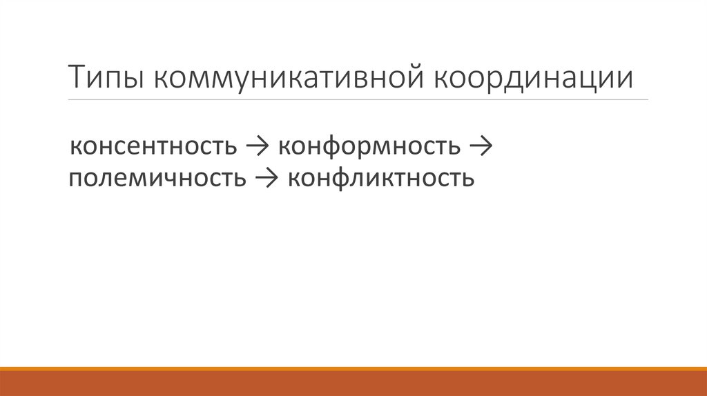 Типы коммуникативной координацииконсентность → конформность →