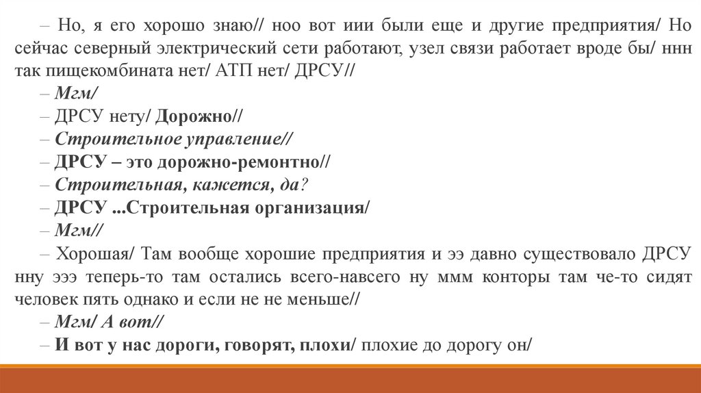 – Но, я его хорошо знаю// ноо вот иии были еще и другие предприятия/ Носейчас северный электрический сети работают, узел связи работает вроде бы/ ннн