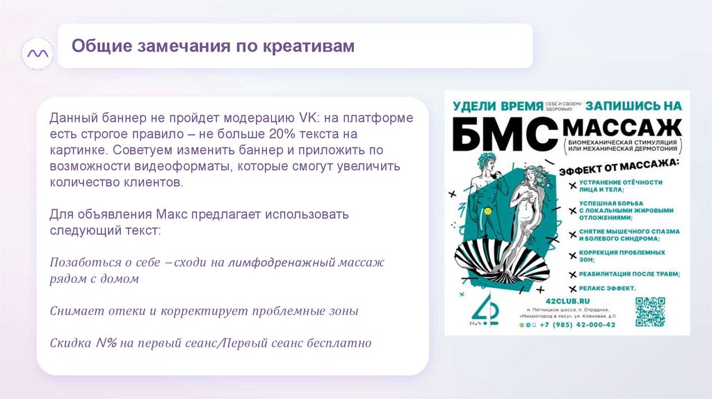 Общие замечания по креативамДанный баннер не пройдет модерацию VK: на платформе