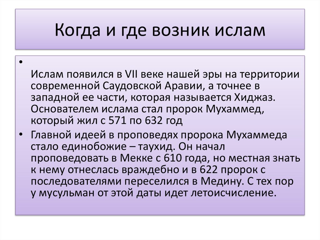 Когда и где возник исламИслам появился в VII веке нашей эры на территории