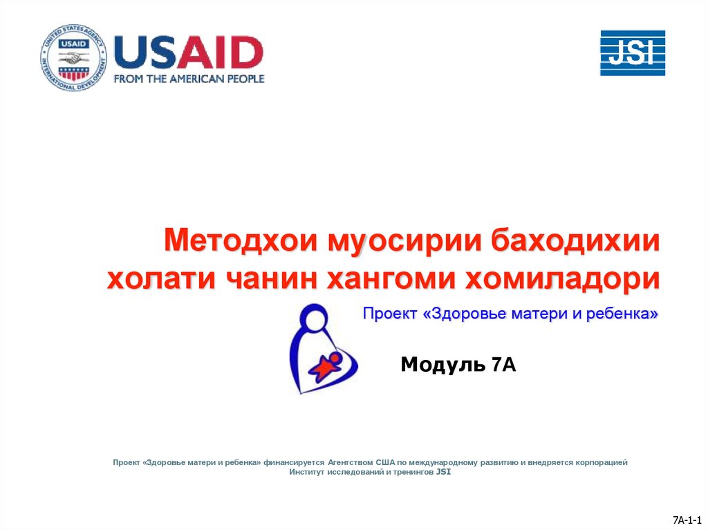 Проект «Здоровье матери и ребенка»Модуль 7А