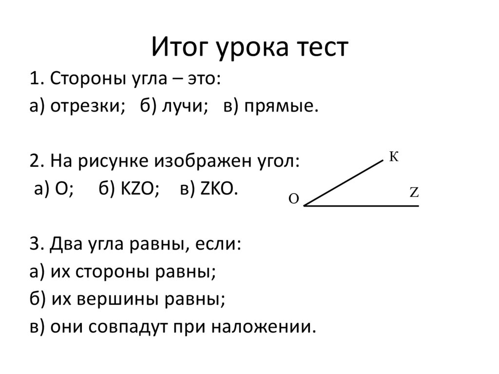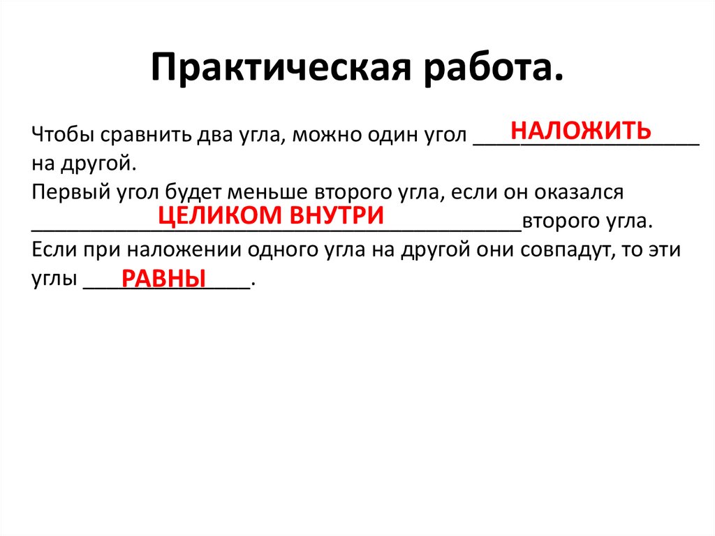 Определение угла. Развернутый угол. Сравнение углов наложением
