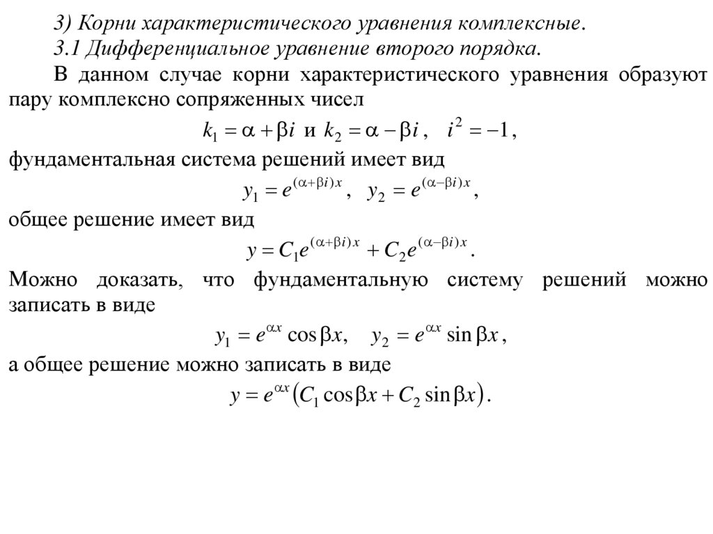 3) Корни характеристического уравнения комплексные.3.1 Дифференциальное уравнение второго порядка.