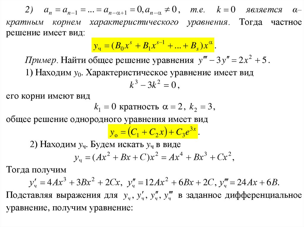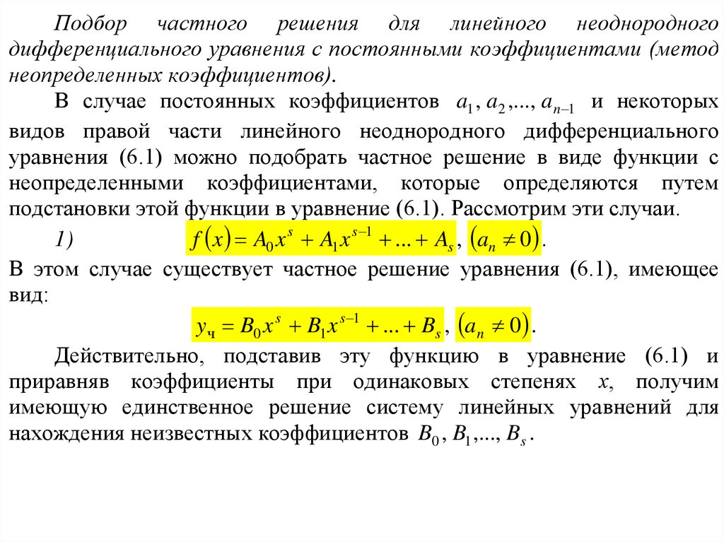 Подбор частного решения для линейного неоднородногодифференциального уравнения с постоянными коэффициентами (метод
