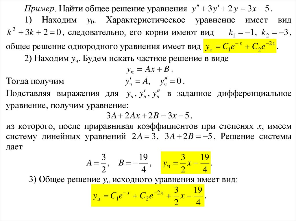соответствующего линейного однородного уравнения (ЛОДУ) и какоголибо частного решения yч линейного неоднородного уравнения: