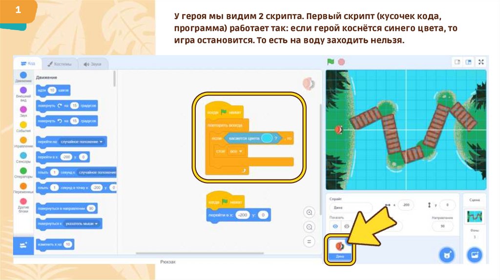 1У героя мы видим 2 скрипта. Первый скрипт (кусочек кода,