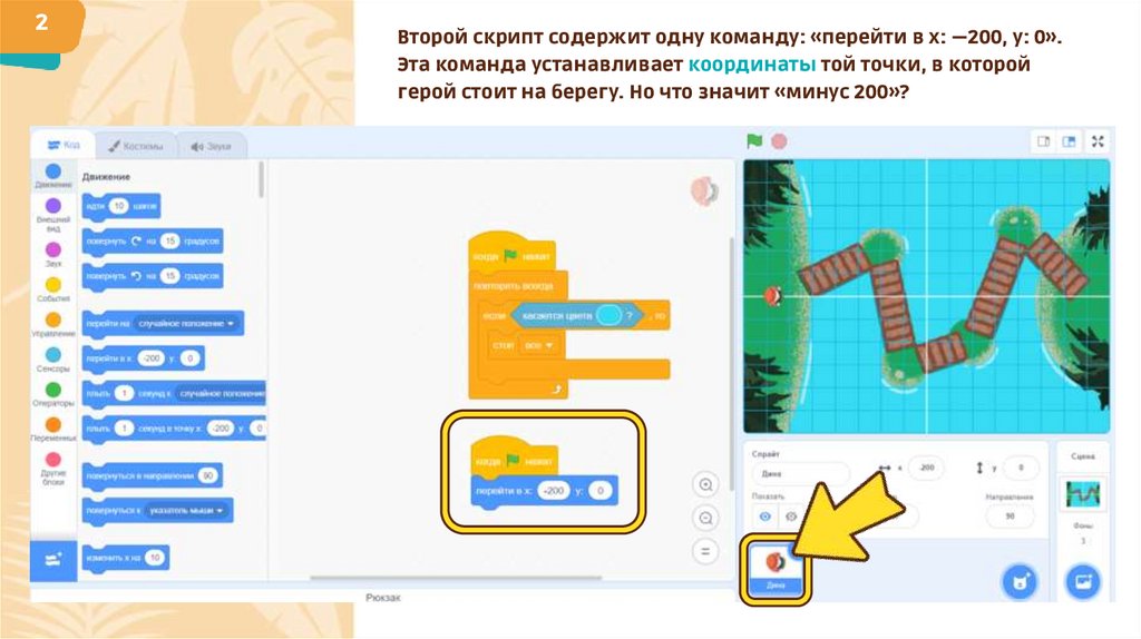 2Второй скрипт содержит одну команду: «перейти в х: —200, у: 0».