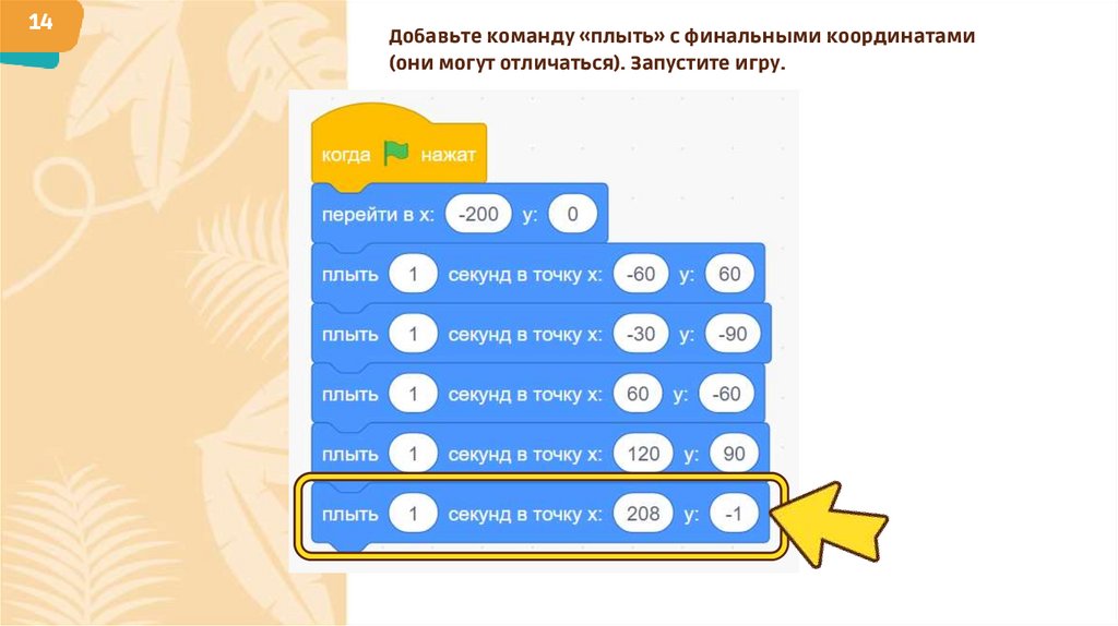 Добавьте 2 команды «плыть». Если вы укажите не те числа —