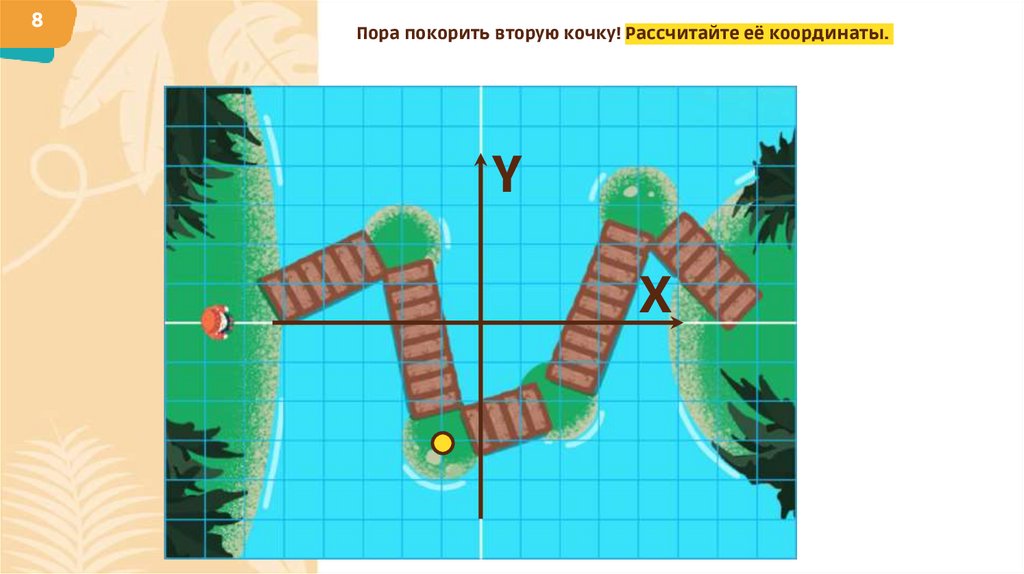 8Пора покорить вторую кочку! Рассчитайте её координаты.
