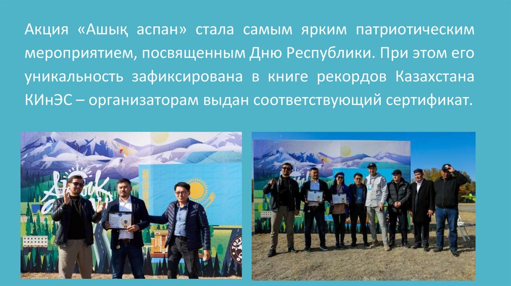 Акция «Ашық аспан» стала самым ярким патриотическиммероприятием, посвященным Дню Республики. При этом его