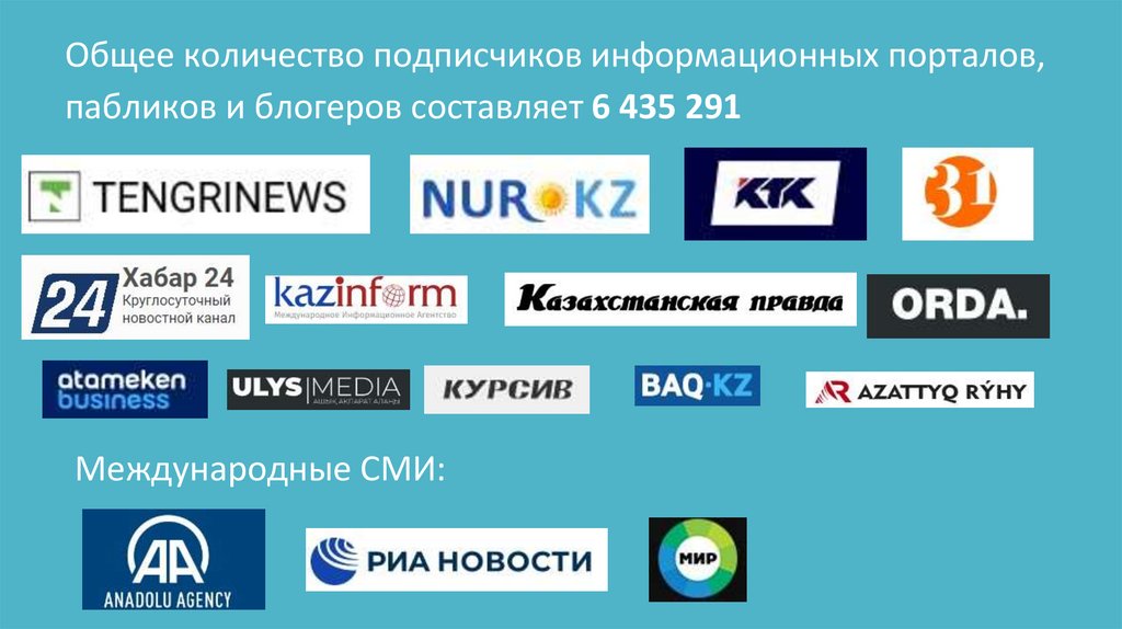 Общее количество подписчиков информационных порталов,пабликов и блогеров составляет 6 435 291