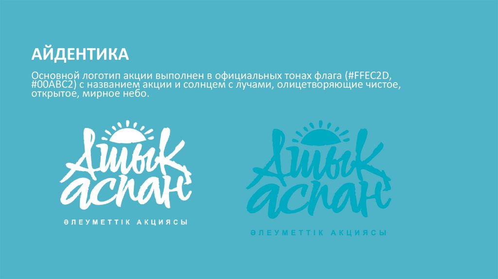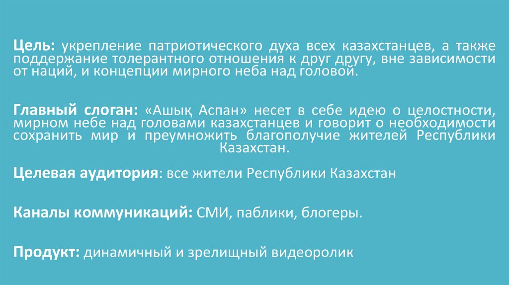 Главный слоган: «Ашық Аспан» несет в себе идею о целостности,