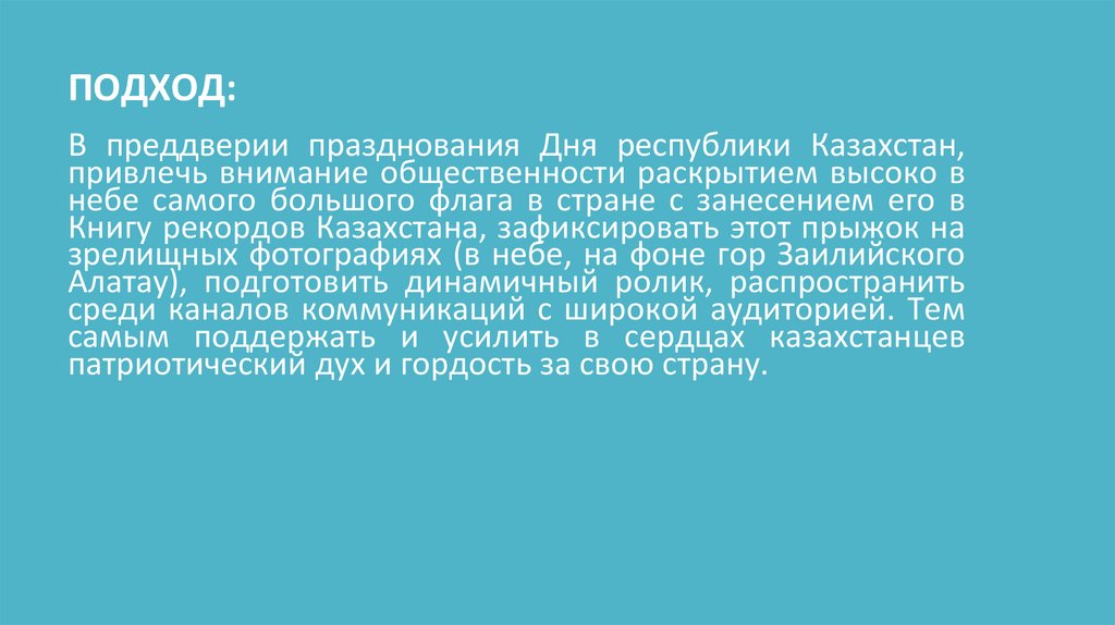 Алатау), подготовить динамичный ролик, распространить