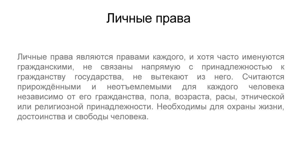 Личные праваЛичные права являются правами каждого, и хотя часто именуются