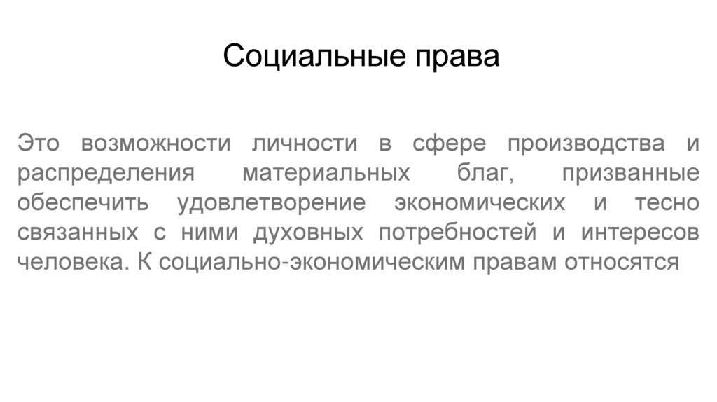 человека обычно делятся на личные, политические, социальноэкономические и культурные, однако, в значительной степени и такое