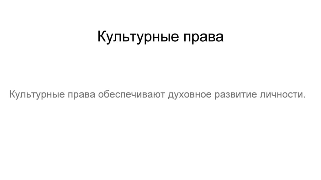 Культурные праваКультурные права обеспечивают духовное развитие личности.