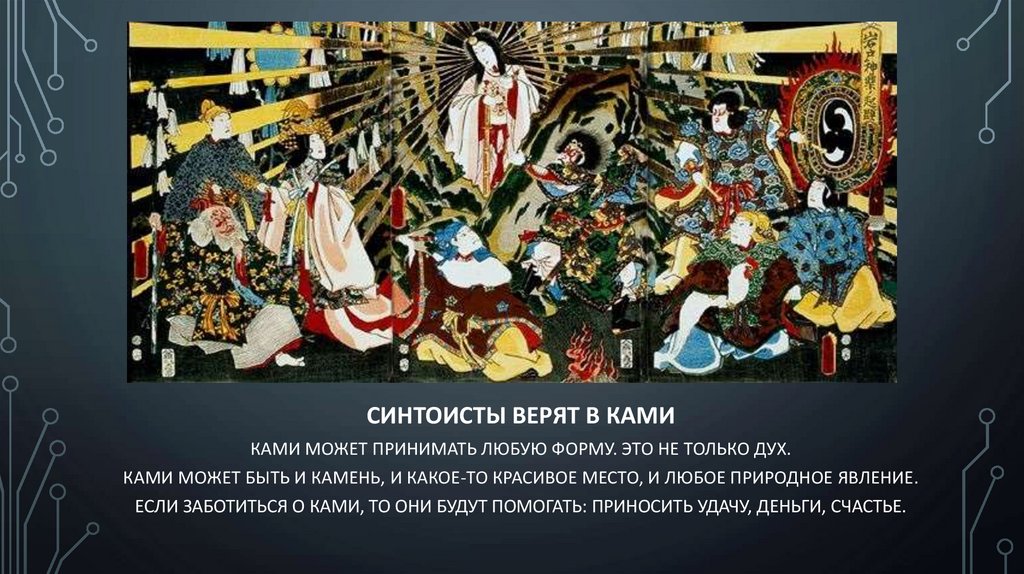 СИНТОИСТЫ ВЕРЯТ В КАМИКАМИ МОЖЕТ ПРИНИМАТЬ ЛЮБУЮ ФОРМУ. ЭТО НЕ ТОЛЬКО ДУХ.