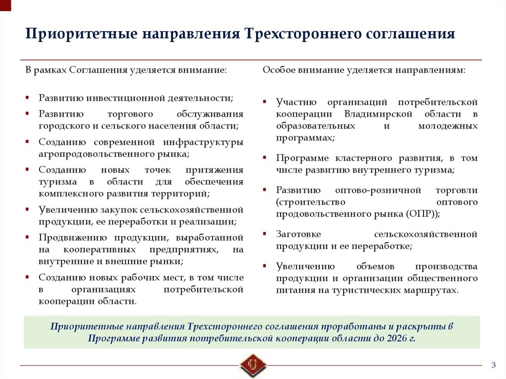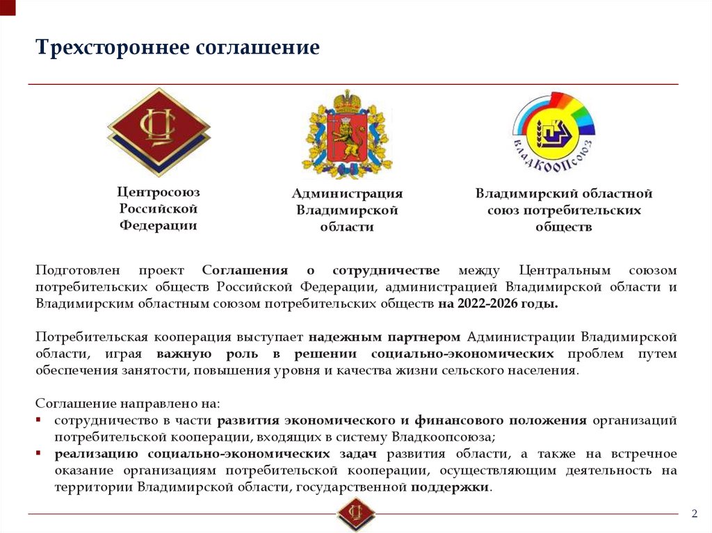 О трехстороннем Соглашении Центросоюза, Администрации Владимирской области и Владкоопсоюза