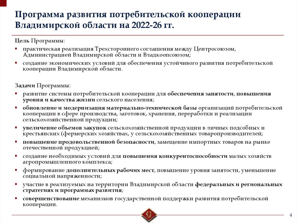 Программа развития потребительской кооперацииВладимирской области на 2022-26 гг.