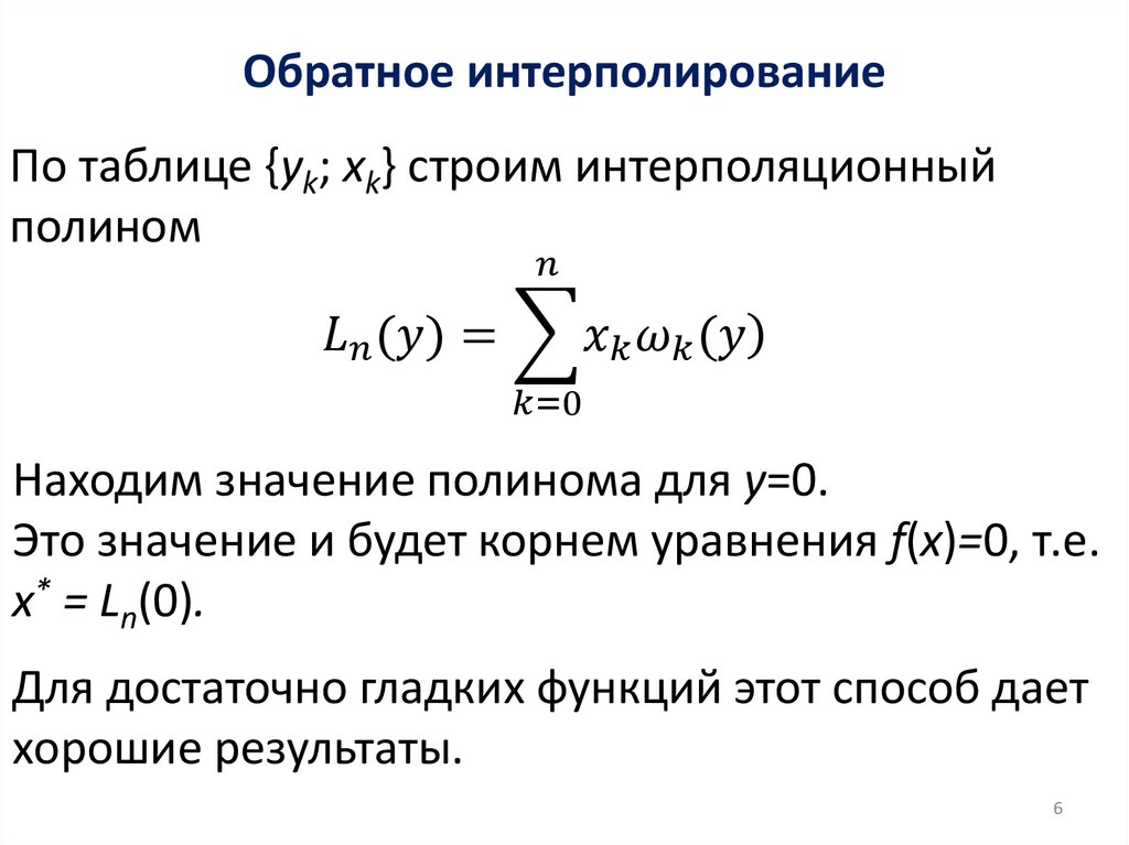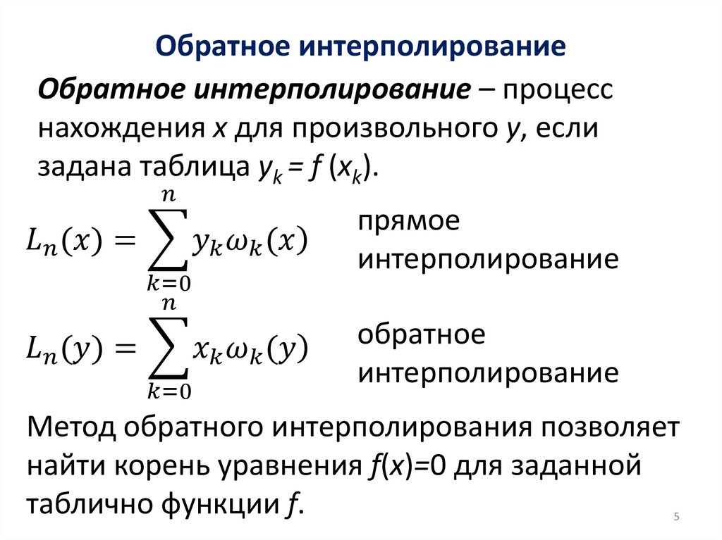 Обратное интерполированиеОбратное интерполирование – процесс