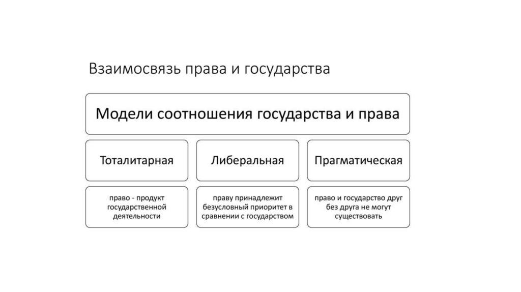 Прагматическая модель В понятии ТГП соотношение и взаимосвязь государства и права,