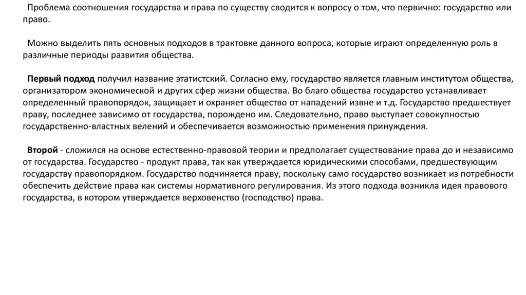 Проблема соотношения государства и права по существу сводится к вопросу о том, что первично: государство илиправо.
