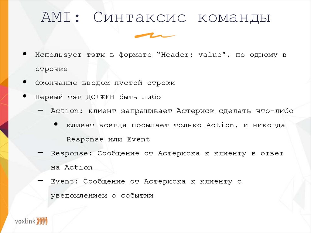 AMI: Синтаксис командыИспользует тэги в формате “Header: value", по одному в