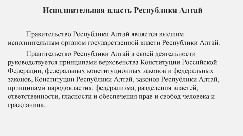 Исполнительная власть Республики АлтайПравительство Республики Алтай является высшим