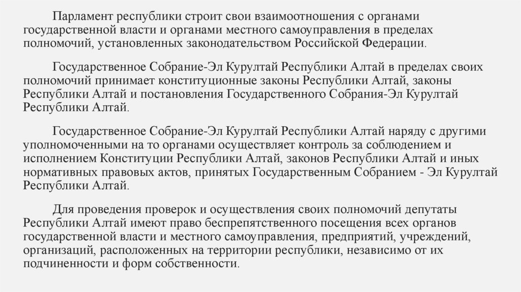 Парламент республики строит свои взаимоотношения с органамигосударственной власти и органами местного самоуправления в пределах