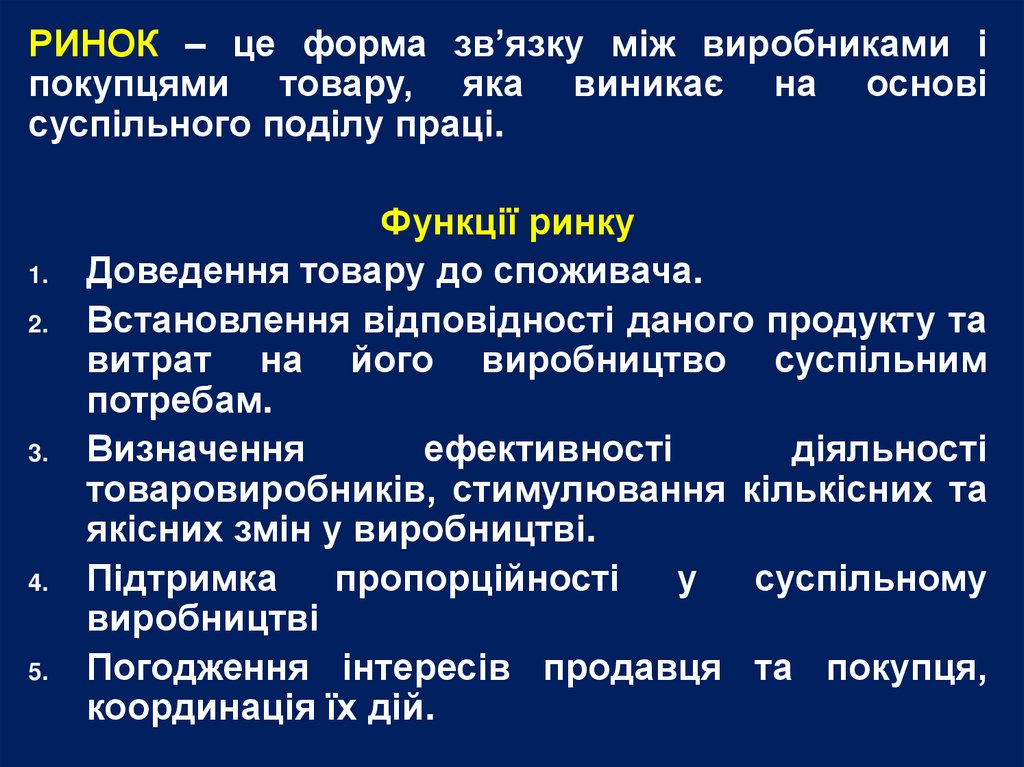 РИНОК – це форма зв’язку між виробниками іпокупцями товару, яка виникає на основі