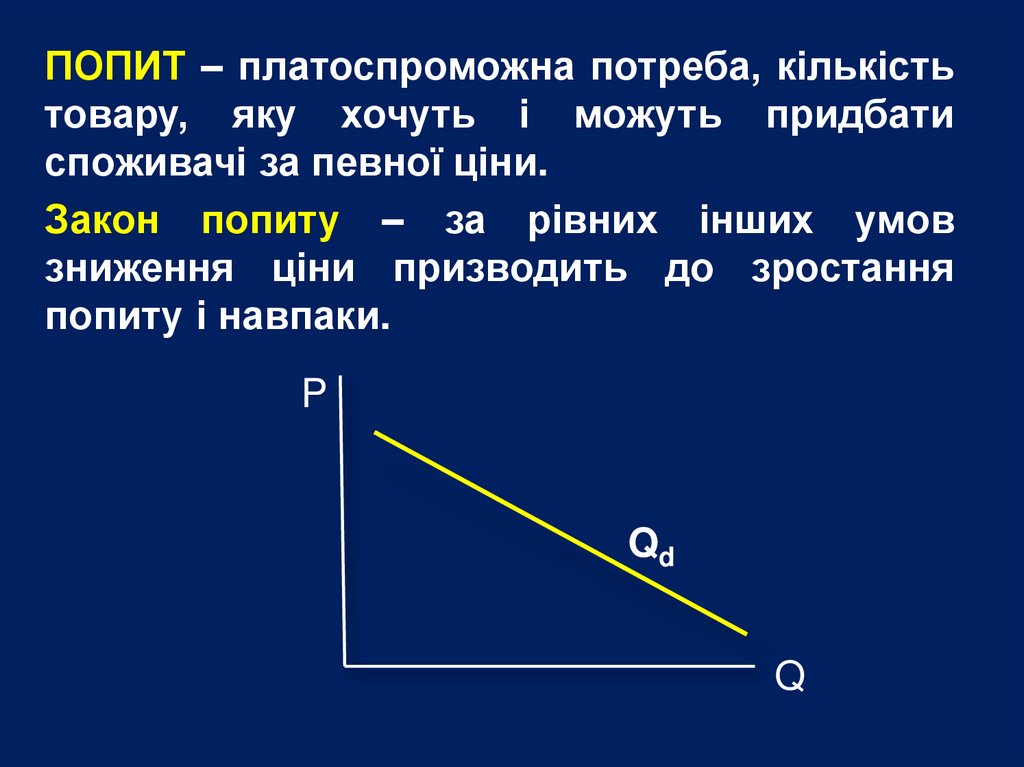 ПОПИТ – платоспроможна потреба, кількістьтовару, яку хочуть і можуть придбати