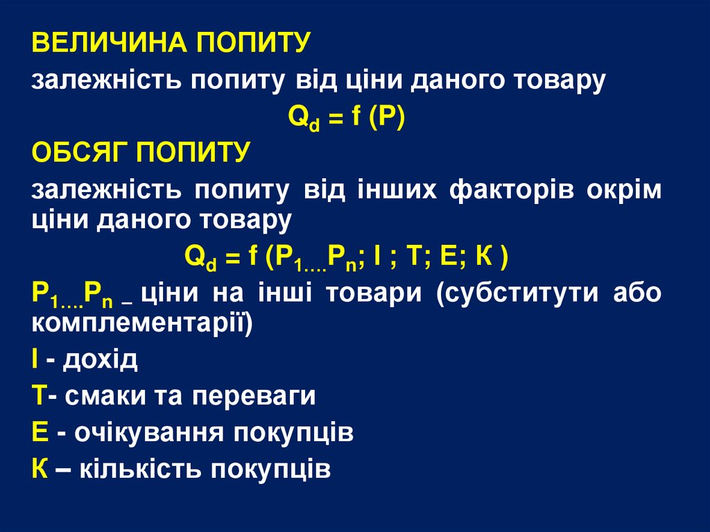 ВЕЛИЧИНА ПОПИТУзалежність попиту від ціни даного товару