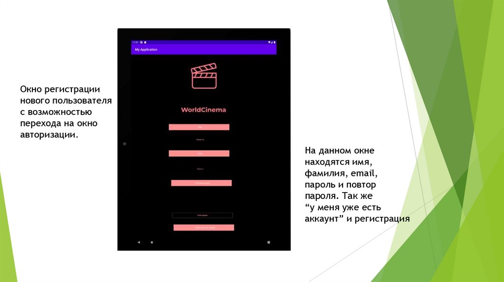 Окно авторизации в аккаунтс возможностью перейти в окно