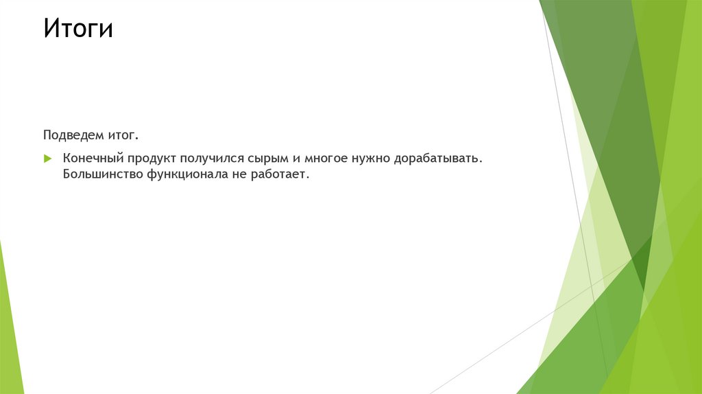 Конечный продукт получился сырым и многое нужно дорабатывать.