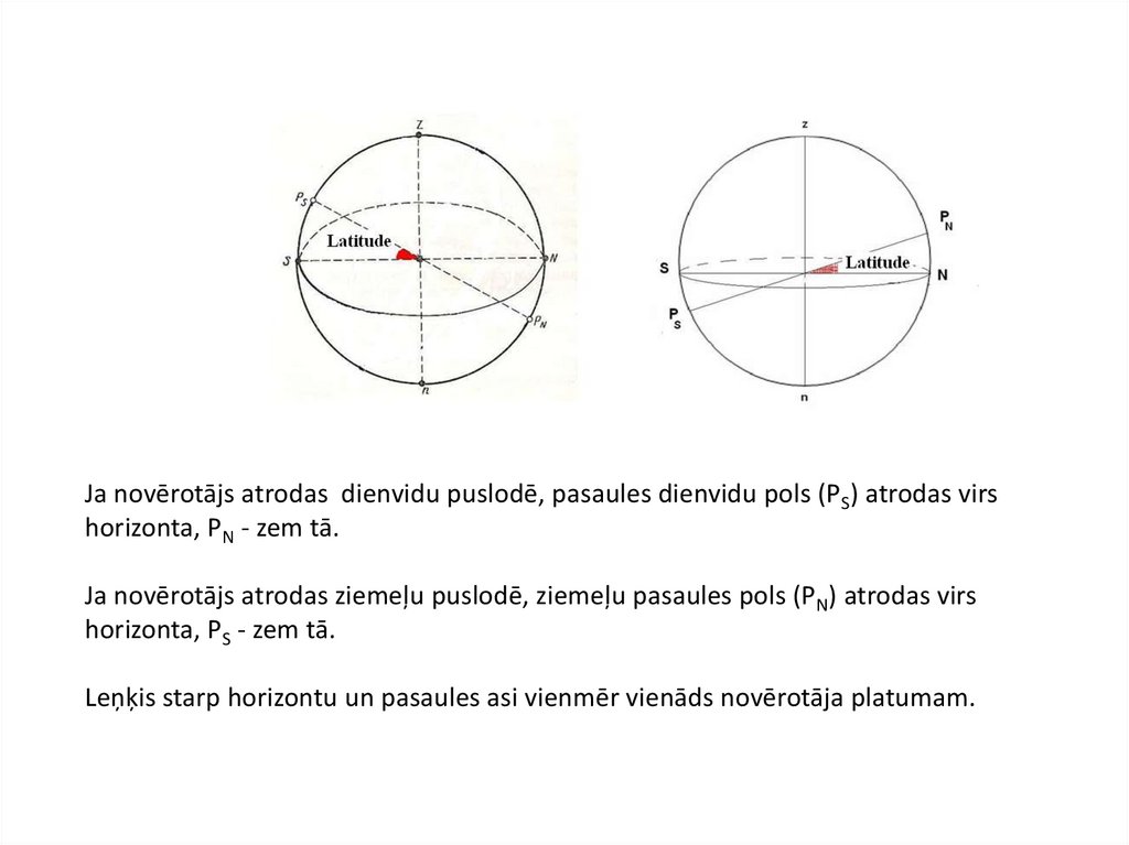Leņķis starp horizontu un pasaules asi vienmēr vienāds novērotāja platumam.