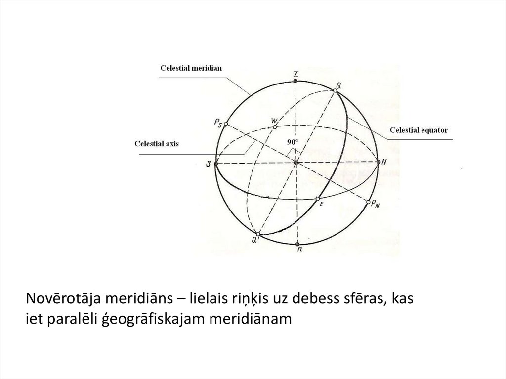 Novērotāja meridiāns18. Novērotāja meridiāns – lielais riņķis uz debess sfēras, kas iet paralēli ģeogrāfiskajam meridiānam