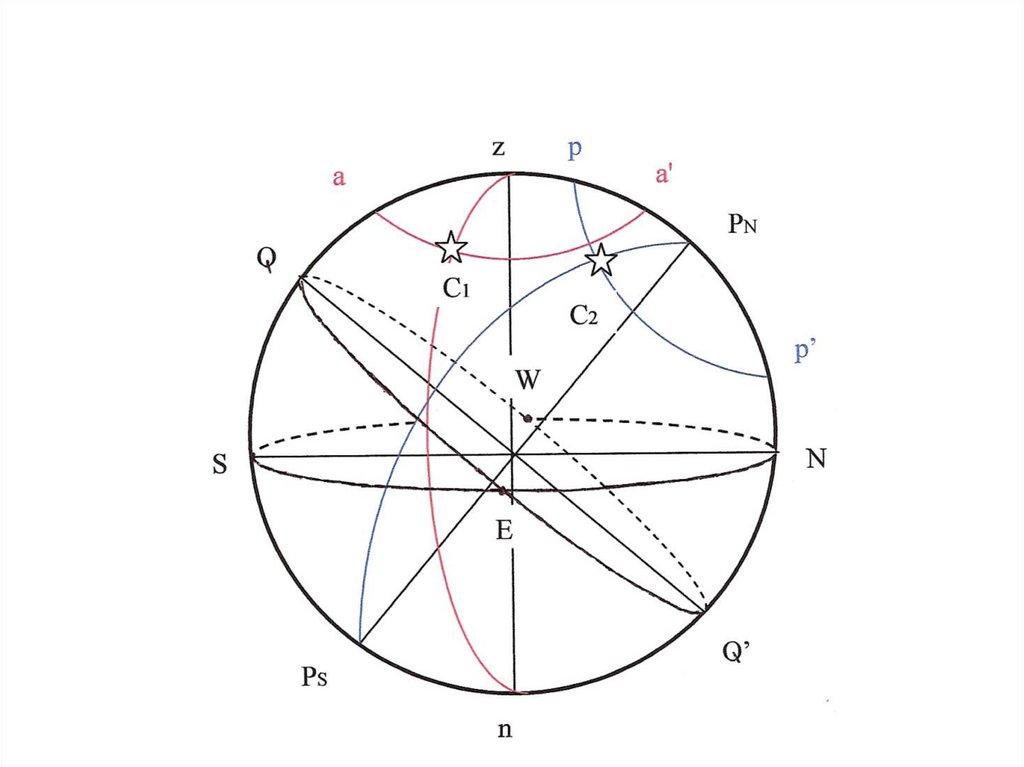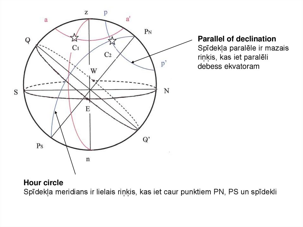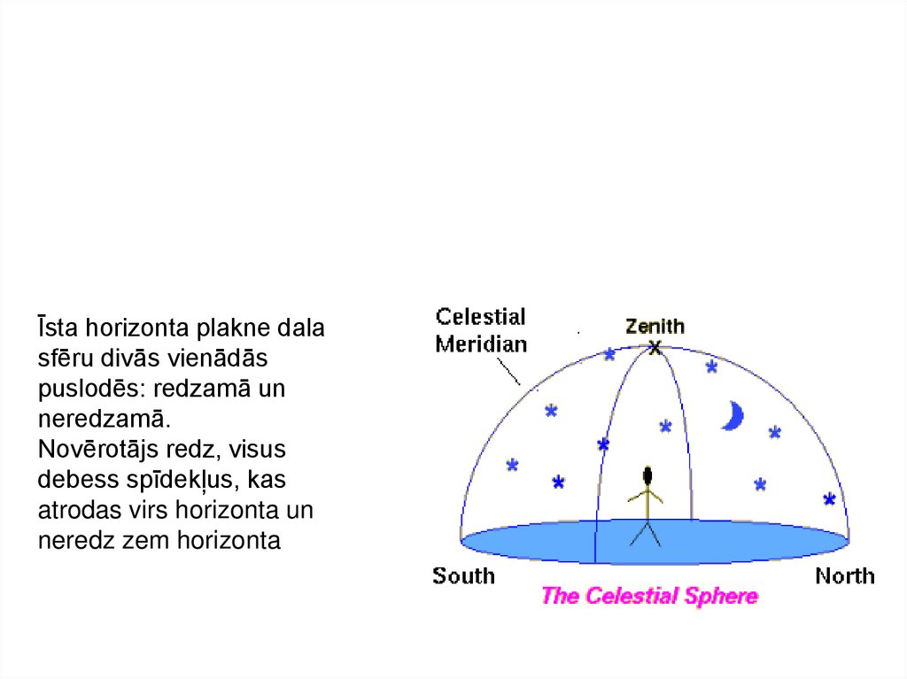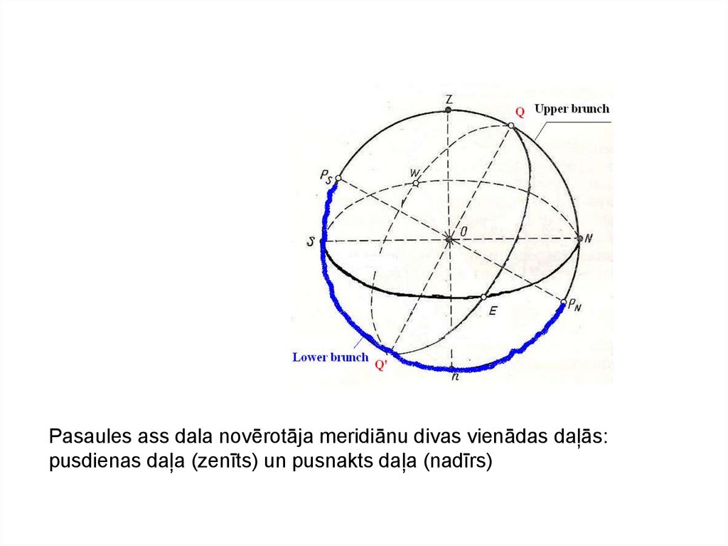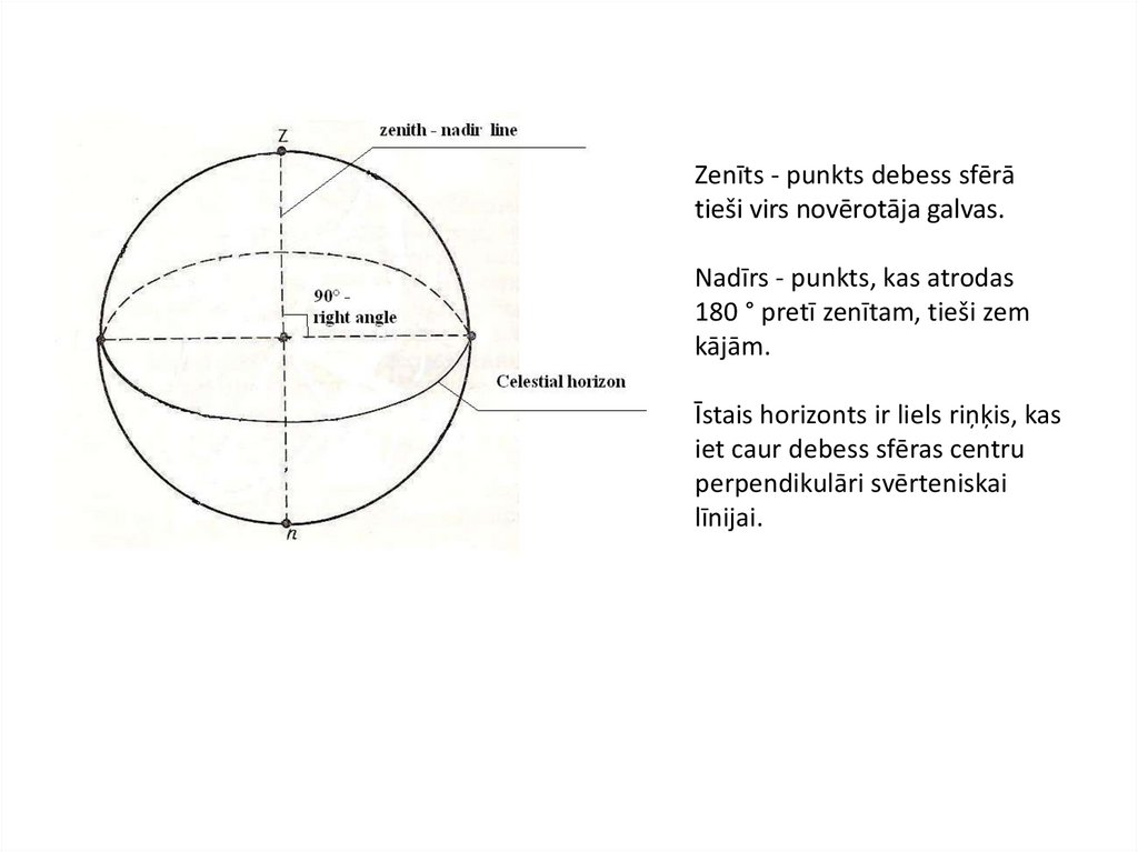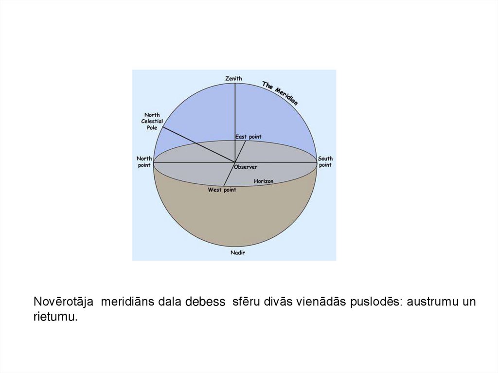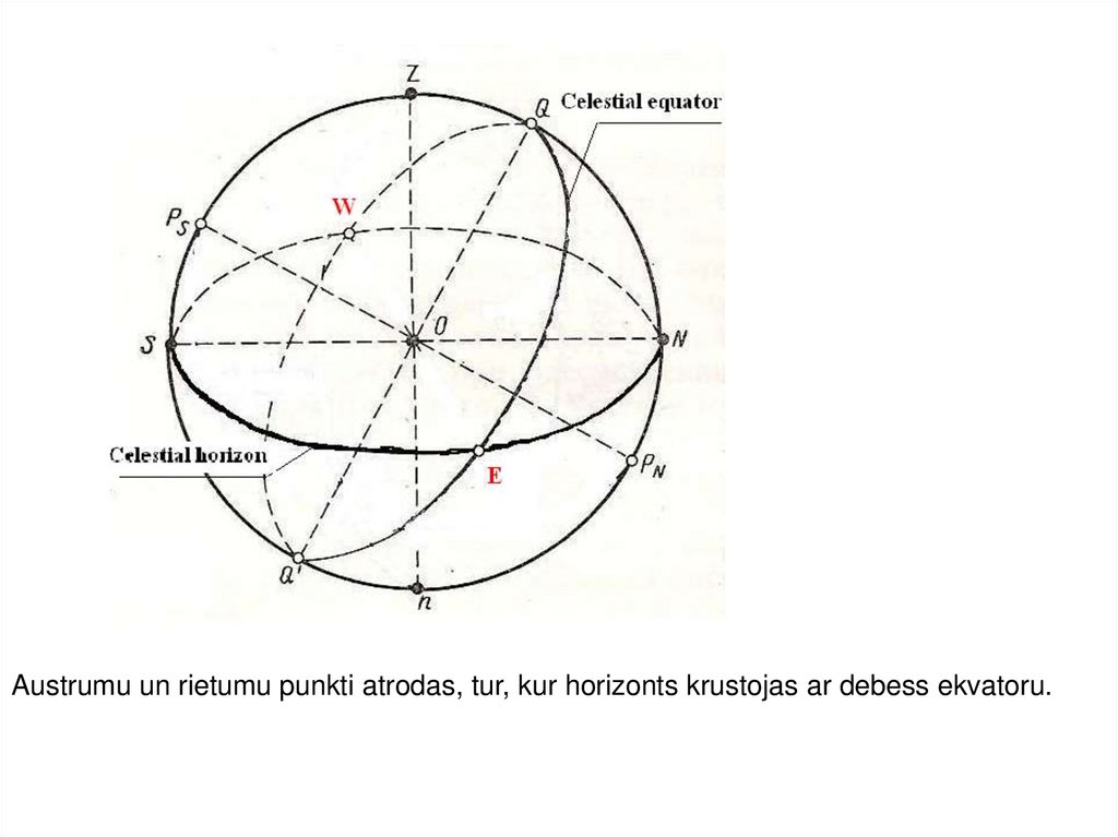 Austrumu un rietumu punkti atrodas, tur, kur horizonts krustojas ar debess ekvatoru.21.
