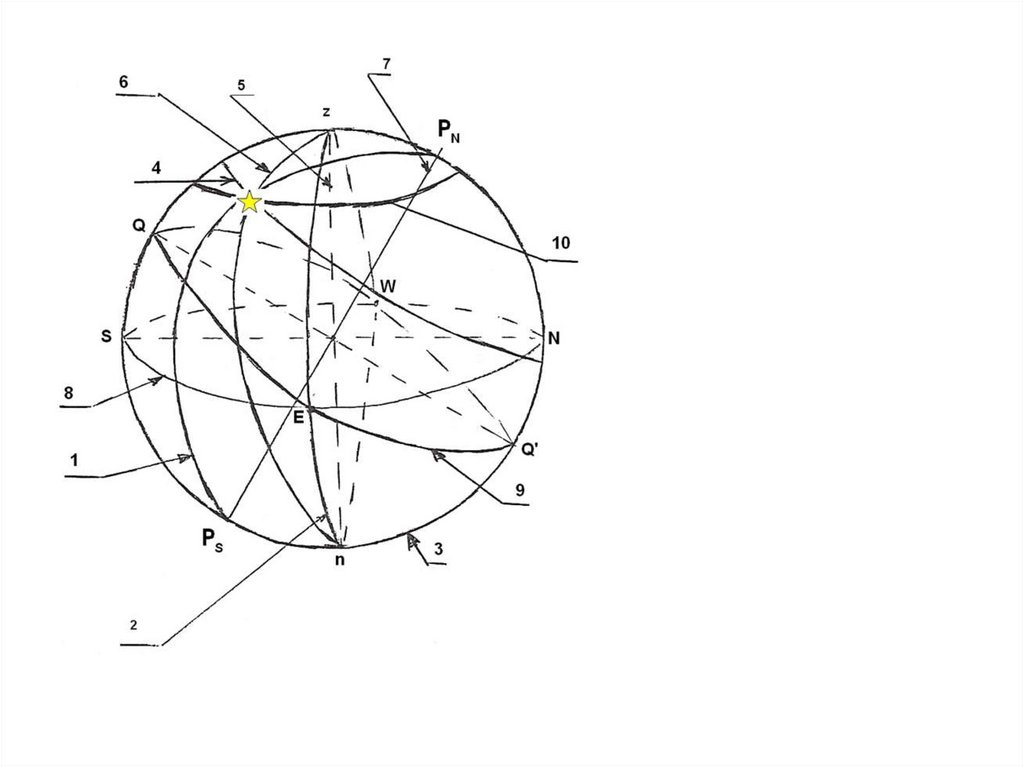 Spīdekļa meridians ir lielais riņķis, kas iet caur punktiem PN, PS un spīdekli