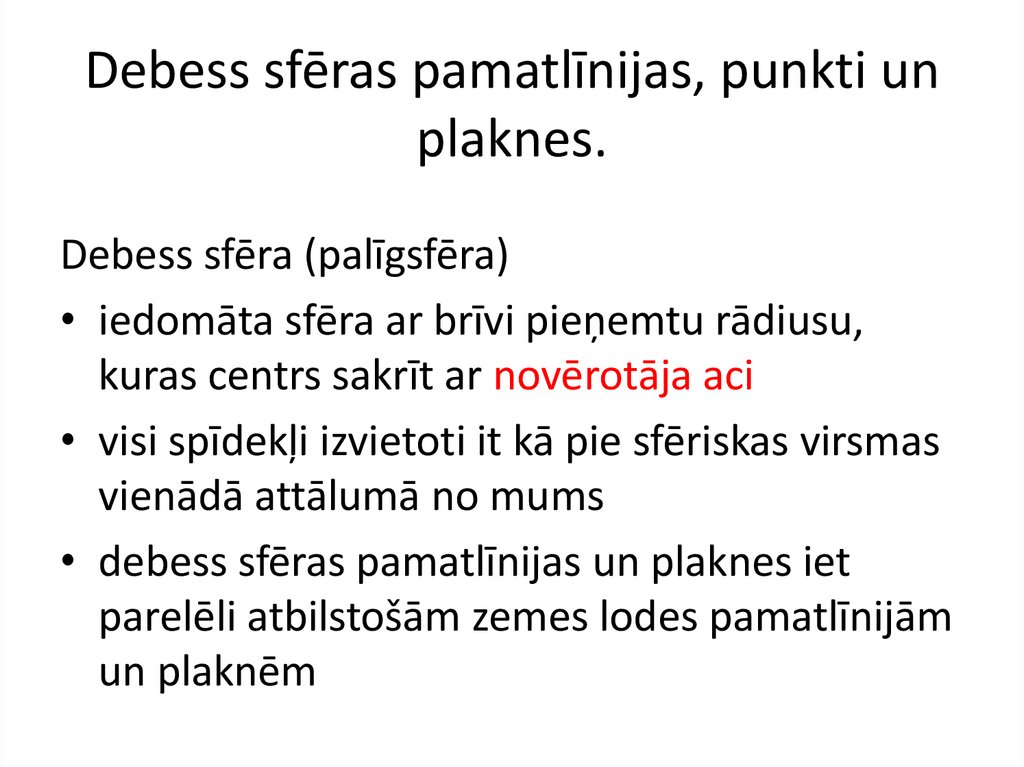 4. Debess sfēras pamatlīnijas, punkti un plaknes.